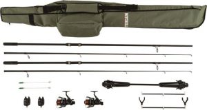 Een complete karperset voor de beginner is de Karperset Mitchell GT Pro die beschikt over een twee sterke hengels van 330 cm en een foam handgreep. Dus lekker vasthouden zit er zeker in tijdens je drill. Naast dat het om een complete set gaat is de rodpod die bij deze set hoort snel op te tuigen en gemakkelijk te vervoeren. Als ik uit eigen ervaring spreek is een gemakkelijke te handelen rodpod een grote aanwinst. Het scheelt veel tijd en frustraties! De vrijloopmolens worden al met draad aangeleverd en het enige wat je nog te wachten staat is een loodje, onderlijntje, wat voer en een batterij voor je beetmelders. en je kan direct gaan beginnen met vissen. En ook deze set heeft swingers die zeker handig zijn in de karpervisserij. Deze karperset voor de beginner is rond de €120,- maar het meer dan zeker waard. Bekijk de Mitchel GT Pro op Bol.com!